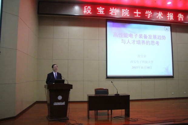 报告会上,段宝岩首先从世界3次科技革命与人类社会历史进程关系的高度出发,介绍了科学技术深刻影响着人类社会的生产力发展和思维方式,详细阐述了目前世界各国工业发展现状和我国启动的“中国制造2025”计划。接着,他从无线电技术、电子技术和信息技术三个时代回顾了电子装备技术的发展历程,就电子装备技术当前的研究热点3D打印、机器人、导航、3S技术、天线等技术的发展趋势一一作了介绍。