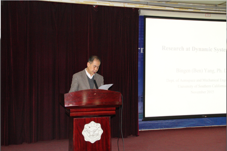 副院长李团结教授邀请,美国南加州大学航天机械工程系终身正教授、南加大航天机械工程系动力系统实验室主任、美国机械工程师协会会士(ASME Fellow)杨秉恩教授来校进行学术交流,并在北校区图书馆西裙楼3楼报告厅作了题为“Modeling & Analysis of Wrinkled Membranes–An Overview”和“Dynamic Analysis of Plates and Shells by the Distributed Transfer Function Method”的两场学术报告。报告会由高h小说