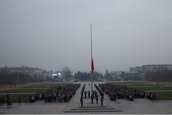 团委书记王飞、辅导员王维佳、俄热肯以及学院全体本科学生共同参加了本次升旗仪式。