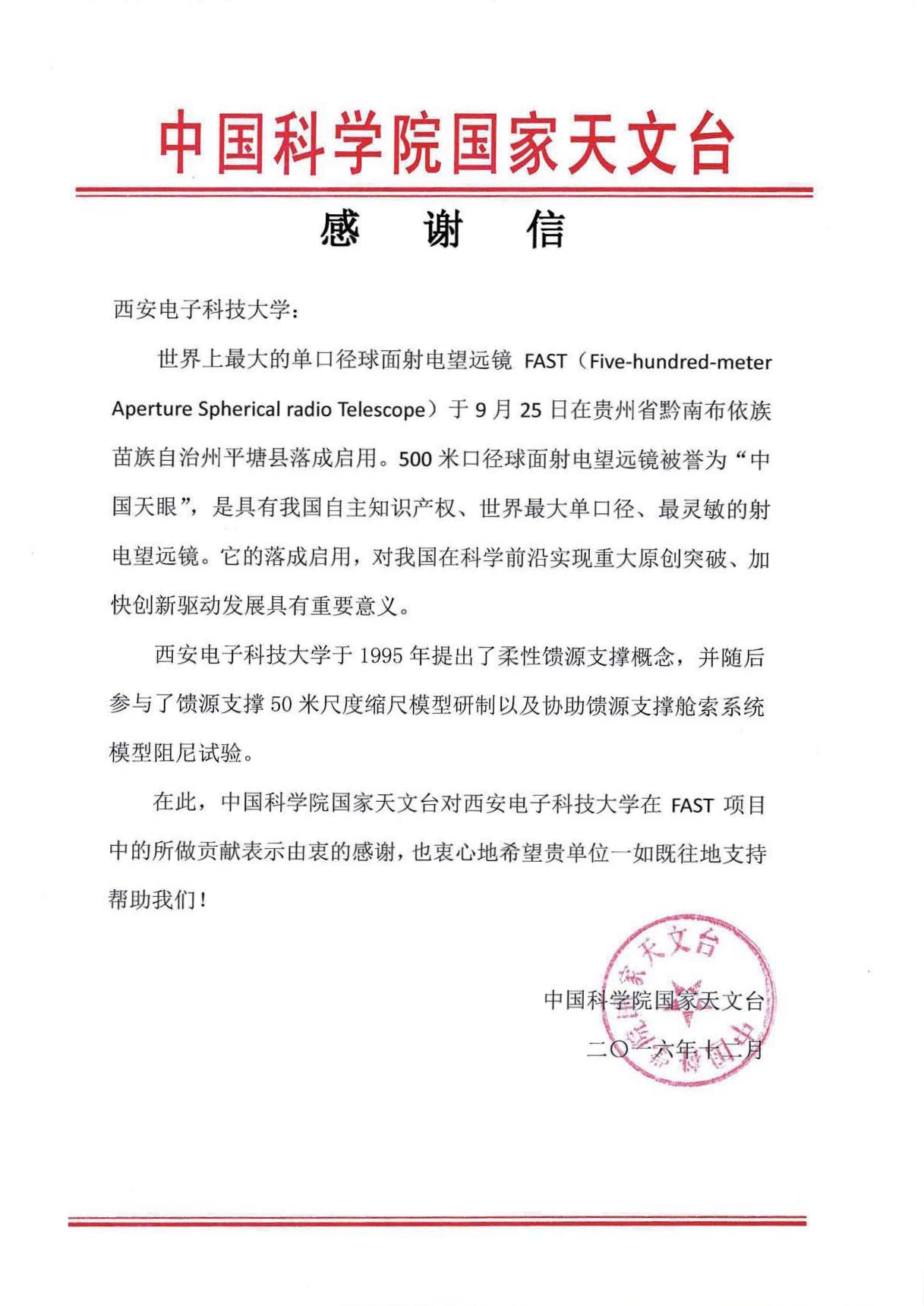 感谢信对段院士团队提出的柔性支撑馈源结构创新性设计表示了赞扬,肯定了高h小说