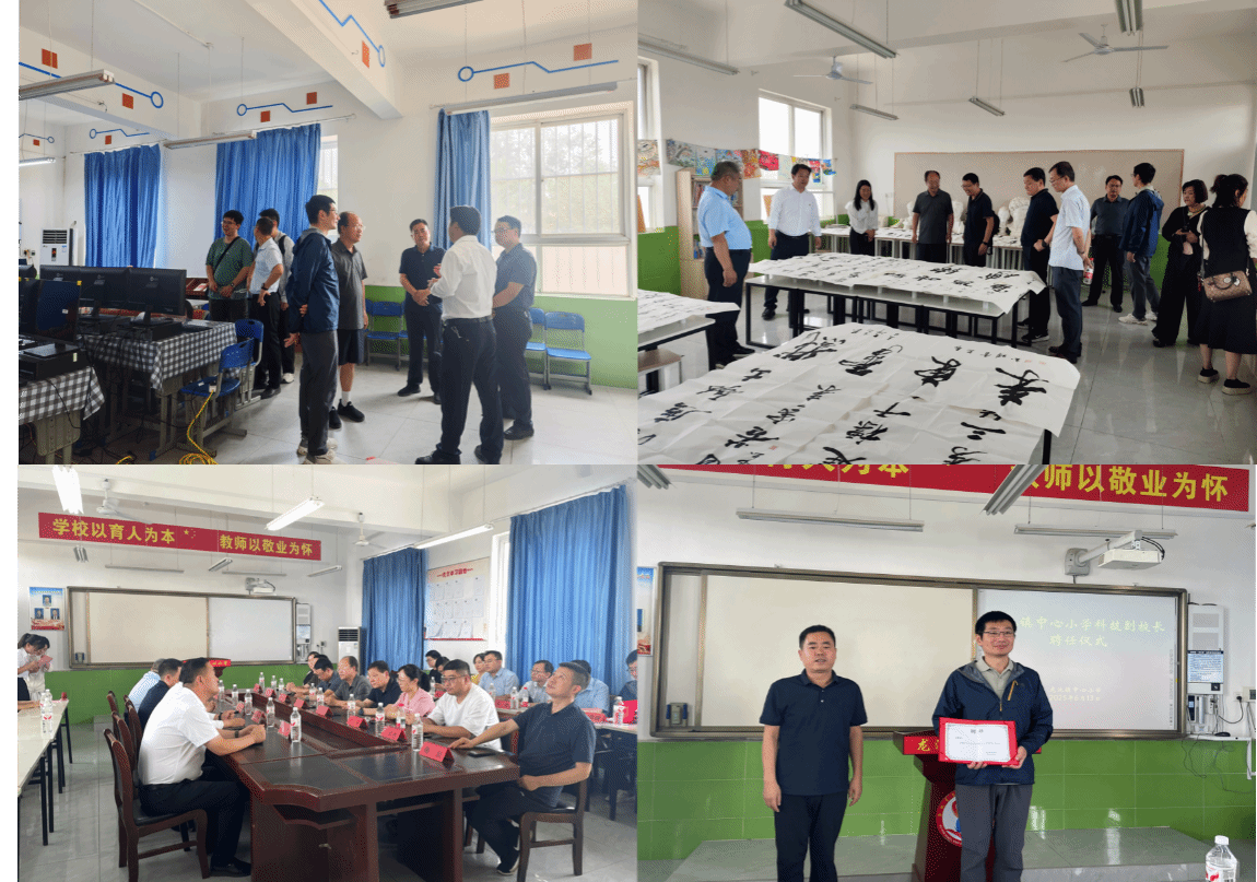 资源下沉把航向,筑梦育人新征程。大家首先观看了龙池小学学生带来的击鼓表演,感受到了学生的饱满热情。随后,龙池小学校长许新鹏带领学院师生依次参观了科创小屋、梦想教室、书法教室,参观过程中直观了解了学校教育环境、科创小屋等的使用情况,为后续合作奠定基础。紧接着,大家来到党员活动室开展座谈。为将学院“为国育才”的初心使命延伸至基础教育一线,将最前沿的科技视野、最鲜活的创新思维带进乡村小学,学院选派了机器人工程系副主任于皓瑜副教授挂职担任龙池小学科技副校长。蒲城县教育体育局副局长由光辉为于皓瑜颁发龙池小学科技副校长聘书,之后双方就挂职后可开展的合作进行了深入的探讨交流。于皓瑜表示,乡村教育是培育未来科技人才的重要土壤,而孩子们对科技的好奇与热爱,正是开启创新之门的钥匙。通过此次挂职,希望将机器人工程领域的专业知识、前沿科技成果,以生动有趣的方式带到校园,为小学科技教育注入提升动力。