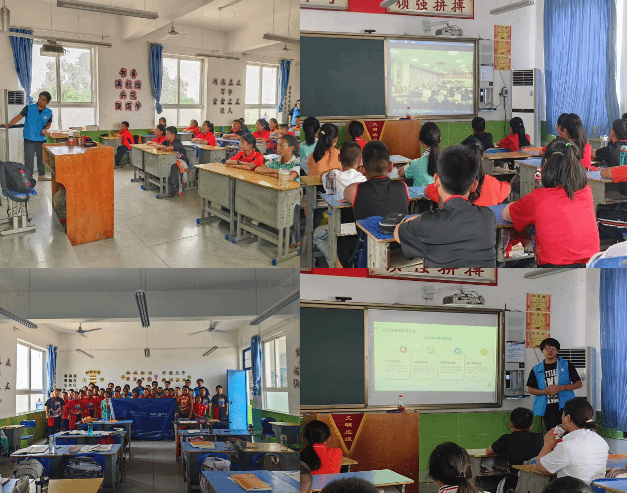 IRobot机器人战队的成长历程,并以RoboMaster机甲大师赛参赛的机器人为例子,讲解了机器人运作的基本原理。李卓键同学以“太空垃圾清理”为主题,介绍了目前主流的太空垃圾清理方式和原理,并讲述了电动帆拖曳系统的创新性。两位同学带来的讲解,让孩子们对未来科技发展充满憧憬,极大地激发了他们的求知欲与创新精神。