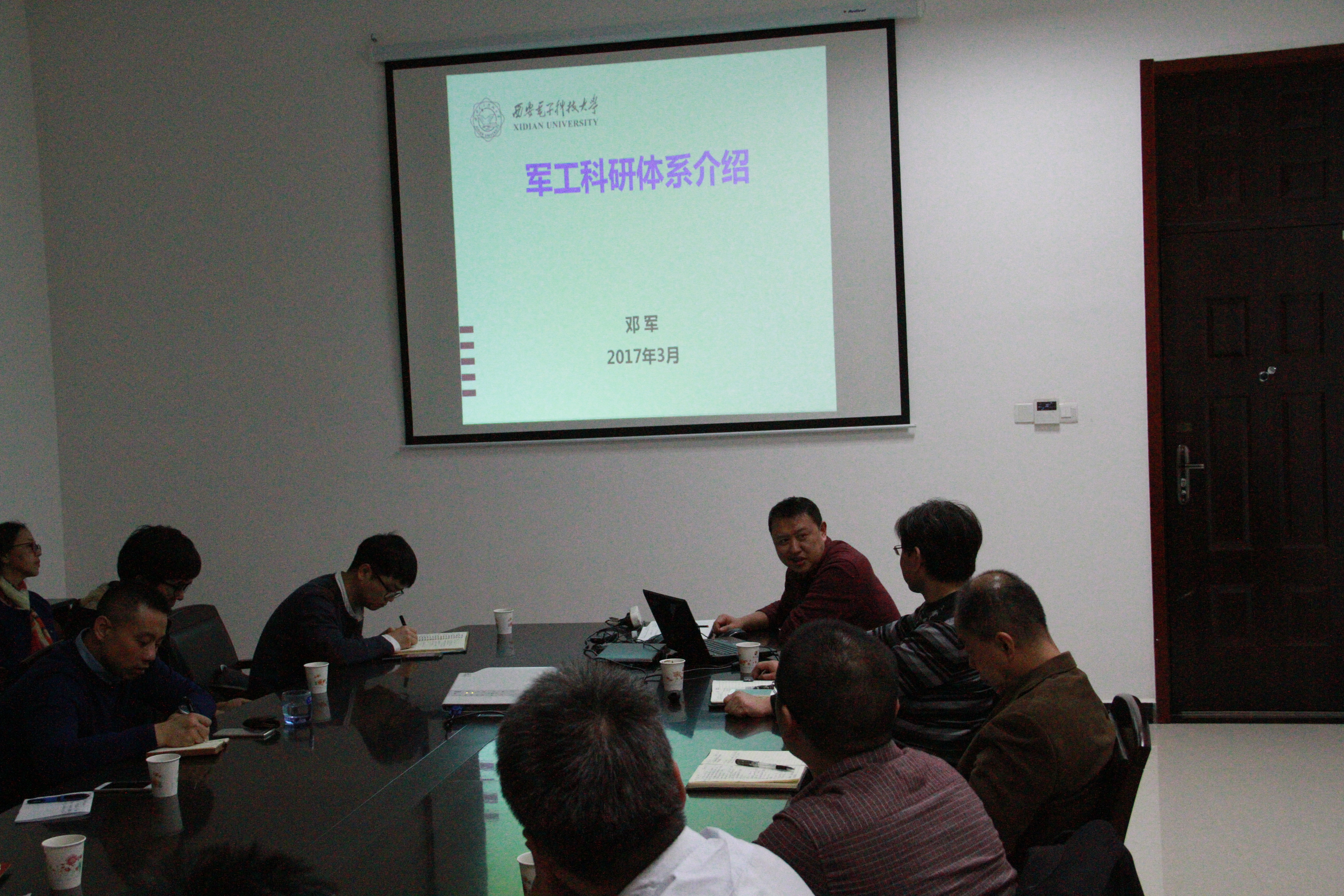 邓军副院长简要地介绍了国家部委项目管理部门体系架构、各类项目的情况,并汇报了学校成果转化中心的筹建情况。他对学院科研工作谋划提出了两点建议:(一)加强顶层设计,进一步凝练标志性成果;(二)转变认识,紧密结合国家战略发展需要,研究面向具有应用,瞄准需求导向,做有用的科研。