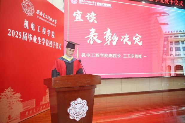 授位仪式在庄严的国歌中正式拉开帷幕。副院长段学超宣读了学院2025届毕业生授位决定,授予21名研究生博士学位、304名研究生硕士学位、435名本科生学士学位。副院长王卫东宣读毕业生表彰决定,对在学业、科研、实践等各方面表现优异的毕业生进行表彰,肯定他们在校期间的努力与成就,希望他们在未来继续保持奋进姿态,为国家和社会贡献力量。