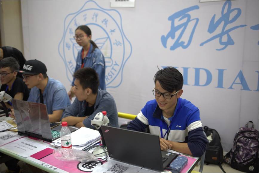 下午2点,迎新工作正式开始。在竹园餐厅报到处,迎新工作人员认真负责地为每一位前来报到的新同学办理各项手续,为有疑问的新生和家长细致解答,用热情和爱心迎接学弟学妹们的到来。