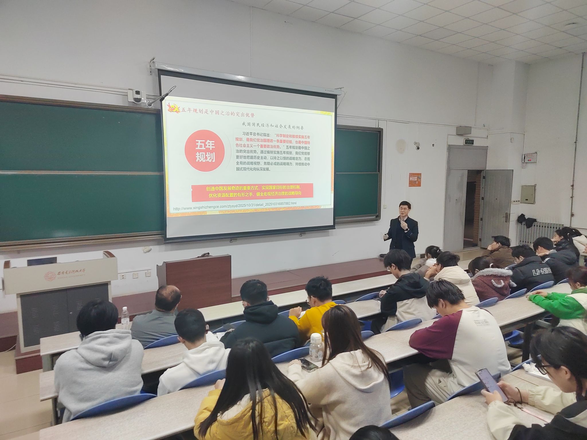 成立了学习贯彻党的二十届四中全会精神宣讲团。11月30日周日下午,宣讲团成员由学院领导班子带头,赴南校区本科生周点名教室开展党的二十届四中全会精神宣讲。