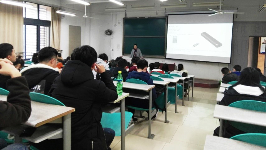 杨渲文校友报告完后,许社教老师就本次报告会的重点—创新进行了强调。围绕创新性工业设计人才培养,同学们首先要有创新意识,由要我创新转变为我要创新;其次,要掌握创新的途径,从技术、艺术、人文三个方面开展创新。技术方面,可从应用创新和集成创新入手,设计智能化或多功能化的工业产品。艺术方面,从造型形态变化、视觉美感方面进行创新。人文方面,从人的体验、关怀、民族或地域文化元素的抽象提取等开展创新;第三,要有创新实现的专业基本功,如手绘功力、电脑作图、结构设计等。作为创新锻炼,许老师鼓励同学们积极参加创新创业项目、自己研究申请专利。