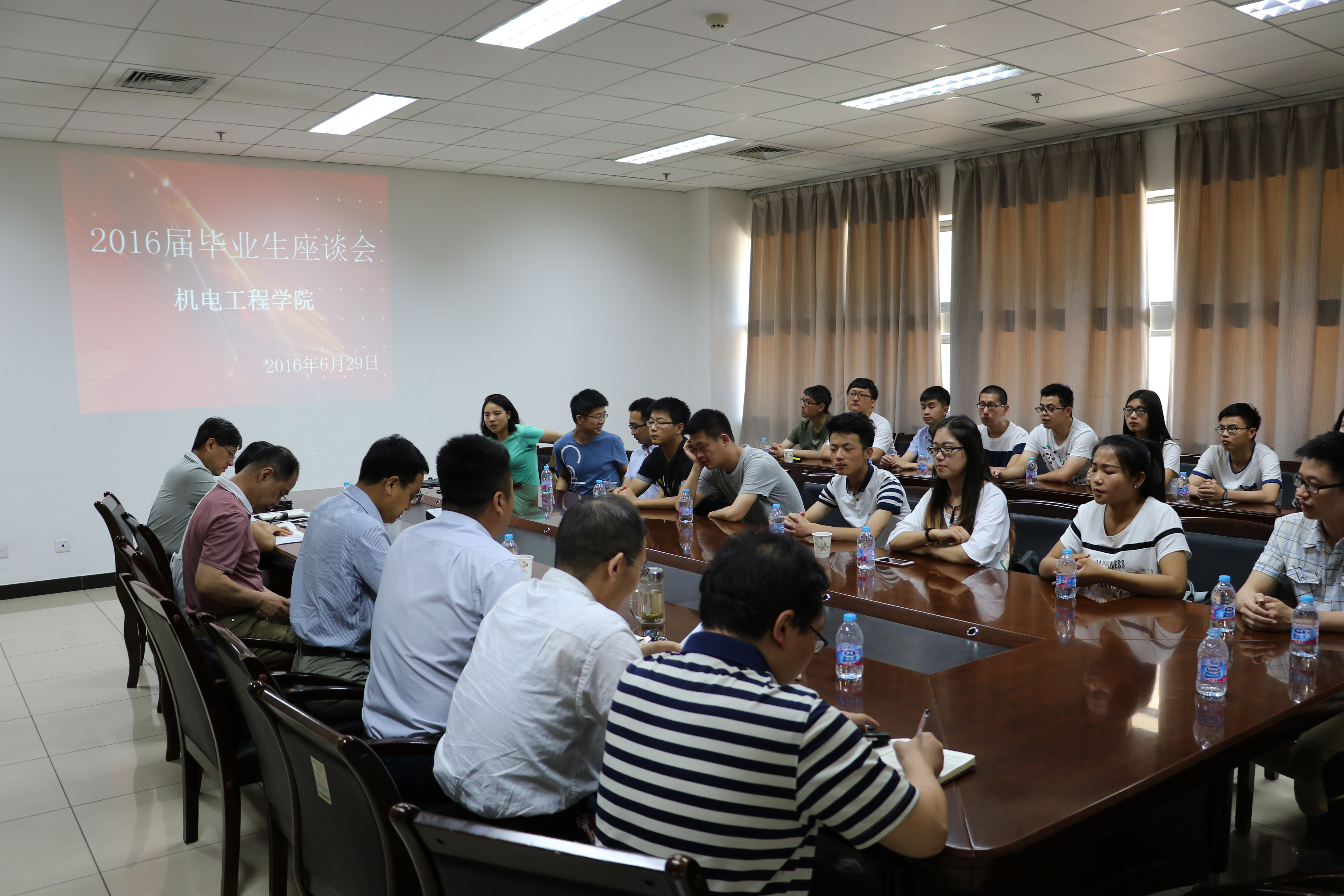 在学院毕业生座谈会上,学院领导认真了解大家的就业情况,并听取了毕业生对学院本科生培养体系的建议和意见,希望他们心系母校,毕业后能常回家看看。在机械设计制造及其自动化专业毕业生代表座谈会上,毕业生提出大三专业必修课程较少,相对外语和人文等专业教师教学过程中课堂缺乏开放性,《机械设计》课程纯理论课程,课堂案例教学不足,应适当加入工程实际应用的介绍等问题,教师代表表示学生们的意见对本专业的专业认证有很大帮助;工业设计专业的就业问题,是老师们最关心的问题,当在座谈会上得知,本届毕业生33人中,上研究生9人,就业24人,就业率100%,并且从事机电产品外观设计、结构设计、用户接口设计等本专业相关工作的同学占60%以上时,老师们格外欣慰,勉励大家继续努力;此外还与自动化专业、电子封装专业本科毕业生代表就学生在校期间学习过程中的培养方案制订、课程设置、授课方式、课程学习、考核方式、课外教学、实践教学、毕业设计、相关保障条件等方面的话题与一线教师代表进行深入的交流和沟通。
