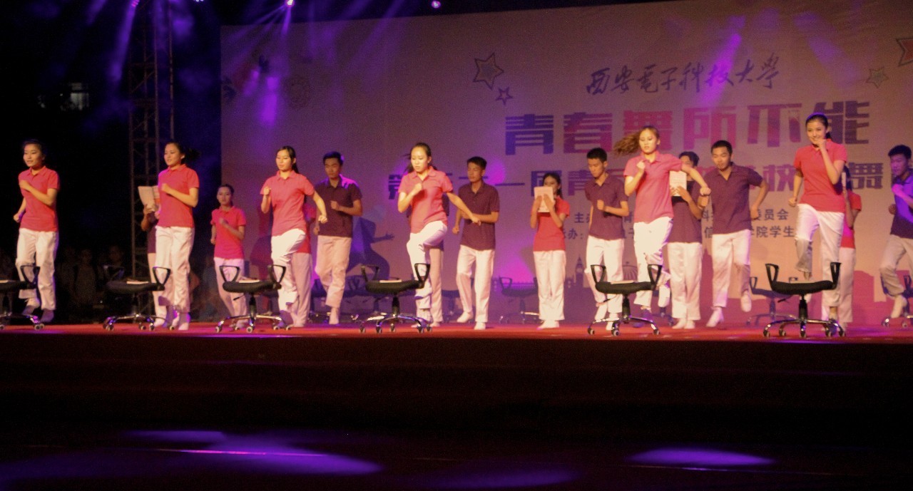 舞蹈队舞姿优美妙曼,步伐活泼欢快,舞蹈灵感来源于平时学生自习时遇到的座位被占问题,通过与座椅配合表演这一新颖方式,独创了抢座位环节,表现了同学们在教室里的不同状态,充分展现了我校大学生刻苦学习争先恐后的学风。