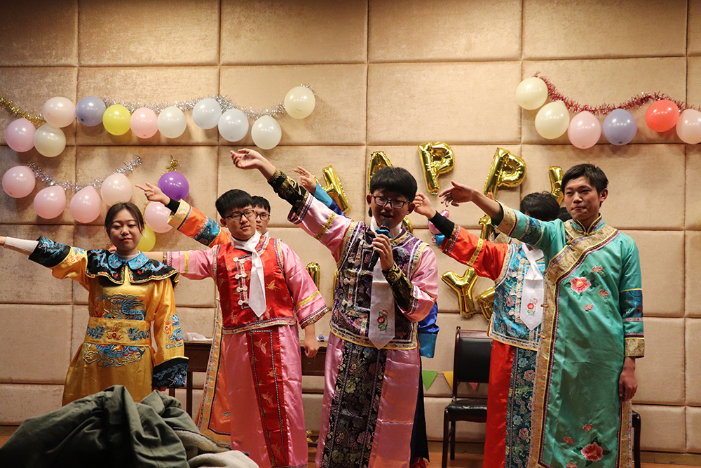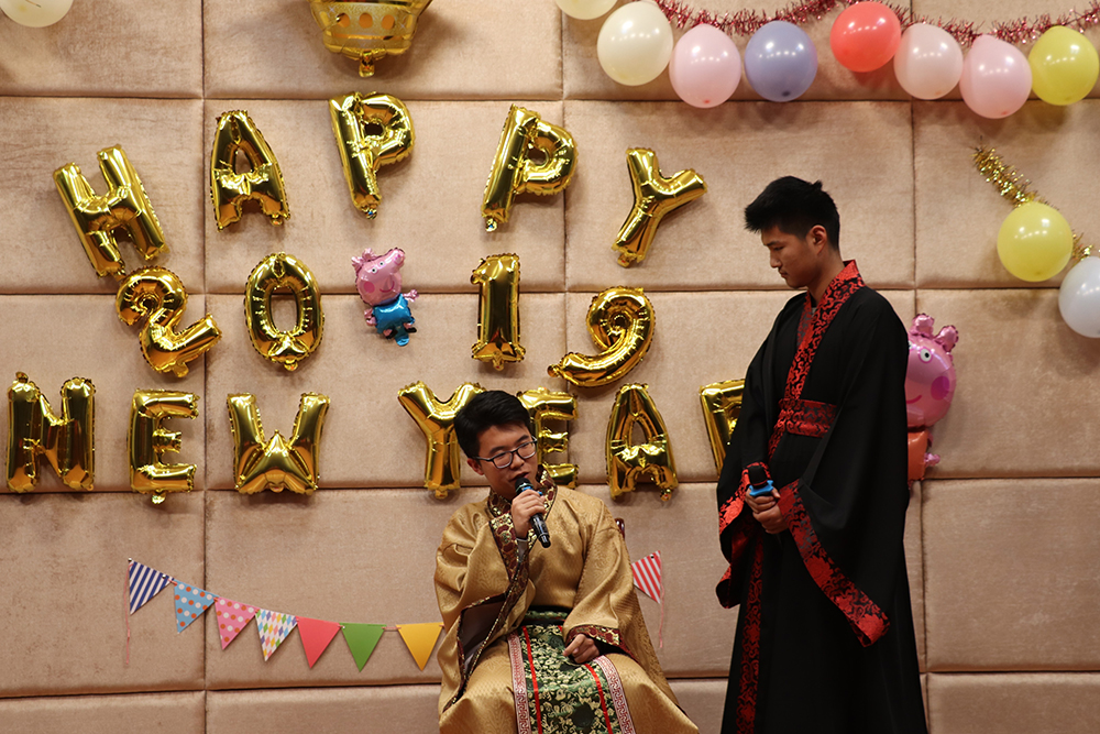 团委的同学们纷纷入座以后,下午6时30分整,主持人用慷慨激昂的语气宣布:元旦晚会正式开始。来自实践部的同学们为大家献上了一支印度舞蹈,在带给大家视觉享受的同时也让大家体会到了异国风情;蒲公英的同学们更是别出心裁,将传统的荆轲刺秦王赋予了现代元素,在紧追时代脚步的同时又不忘记历史带给人们的思考;素拓部的古筝表演和外联部的手风琴表演一古一今,大家静下心去聆听,晚会的节目形式变得更加丰富多彩。晚会不仅仅有精彩的表演,每三个节目之间还插有游戏环节,“踩气球”“占领阵地”“小精灵”三个游戏让观众也参与其中,从坐在台下看节目变成了上台为大家表演节目,看演结合,一瞬间活动室成为了欢乐的海洋。晚上10点整,副书记任权宣读了表彰决定,对 2018 年成绩显著、表现突出的部门和个人进行了表彰并为团委的同学们送上了新年祝福。