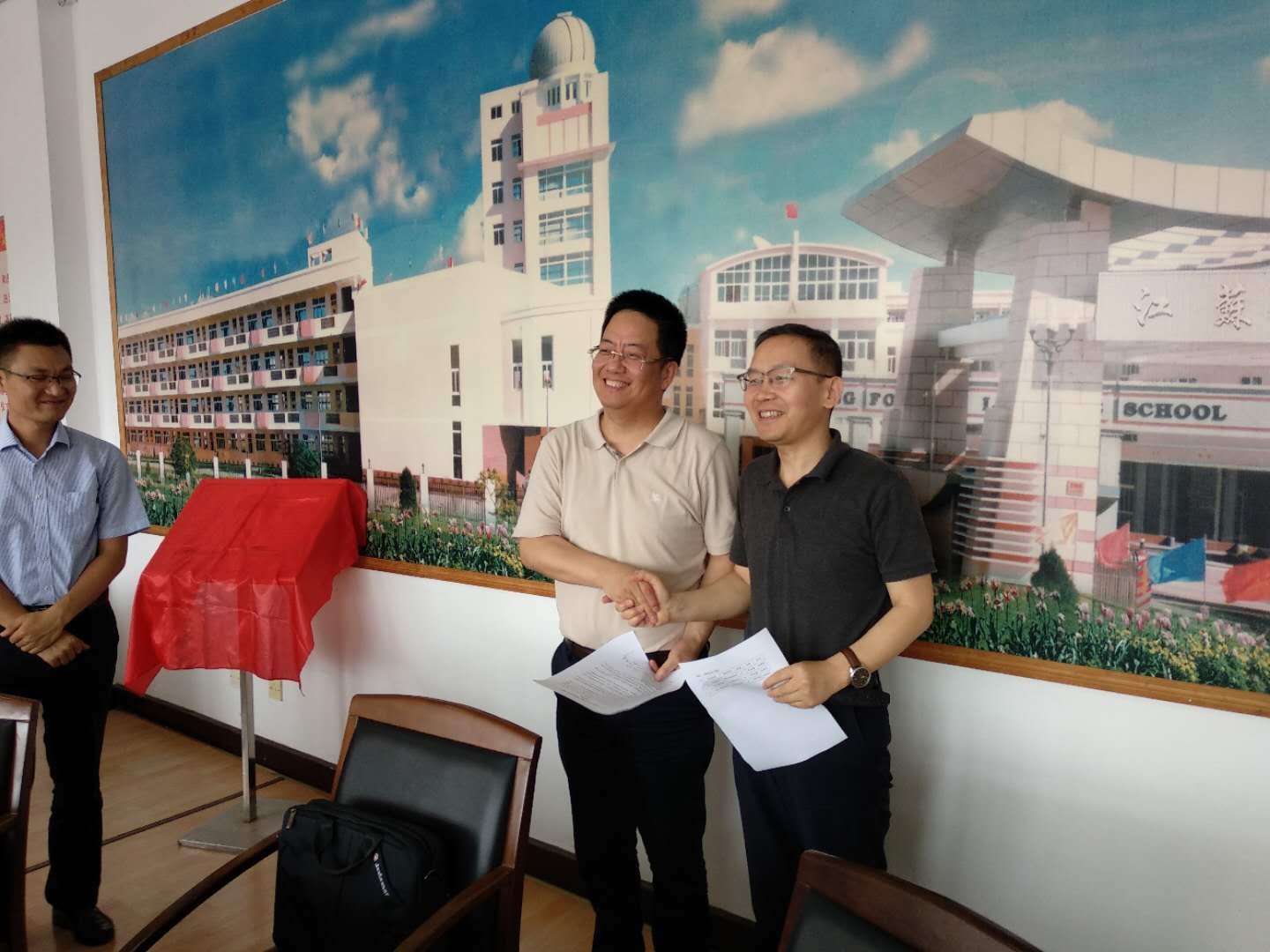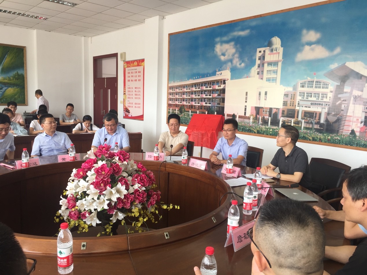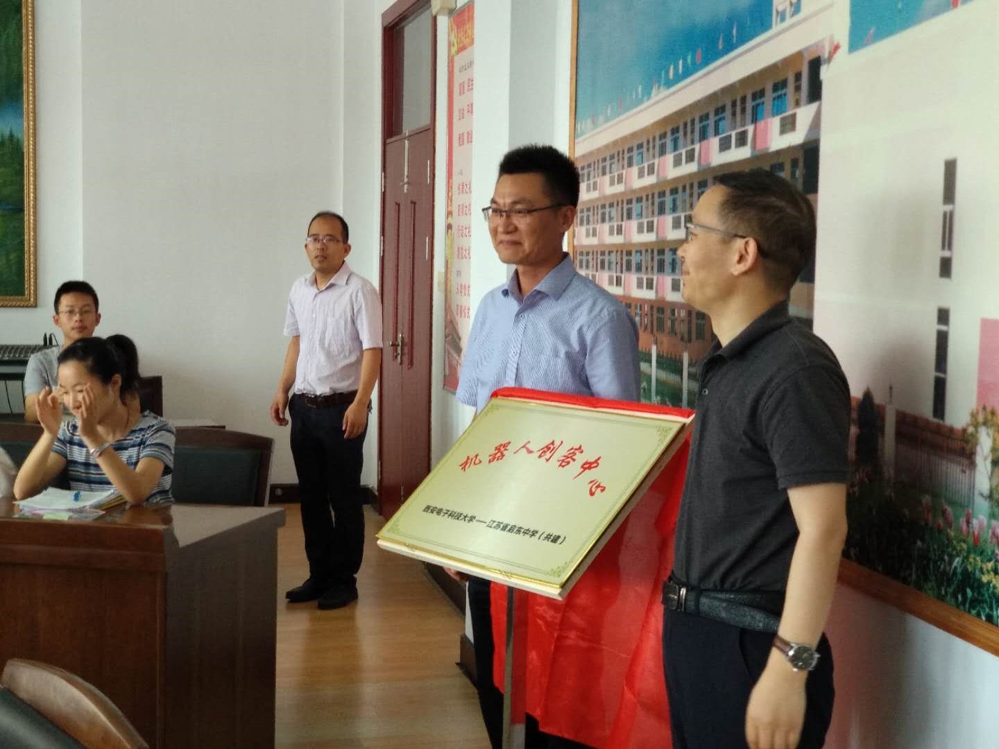 与江苏省启东中学共建"追梦机器人创客中心"揭牌仪式在江苏启东中学举行,我院李团结副院长、测控系主任陈晓龙、测控系教师谢永强、詹劲松赴江苏启东中学参加了活动。