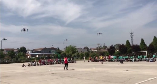 同时,学院机关党支部还联系了学校机器人团队的孙伟教授,带领五名学生志愿者携带着专业无人机,为全校同学们进行了精彩的无人机编队表演,博得了孩子们的阵阵掌声,孩子们观赏之后纷纷表示,长大后也想学习无人机技术。