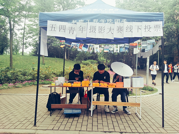 团委外联部于4月22日在海棠餐厅外举办了五四青年摄影比赛外场活动,该活动于下午4点圆满结束。