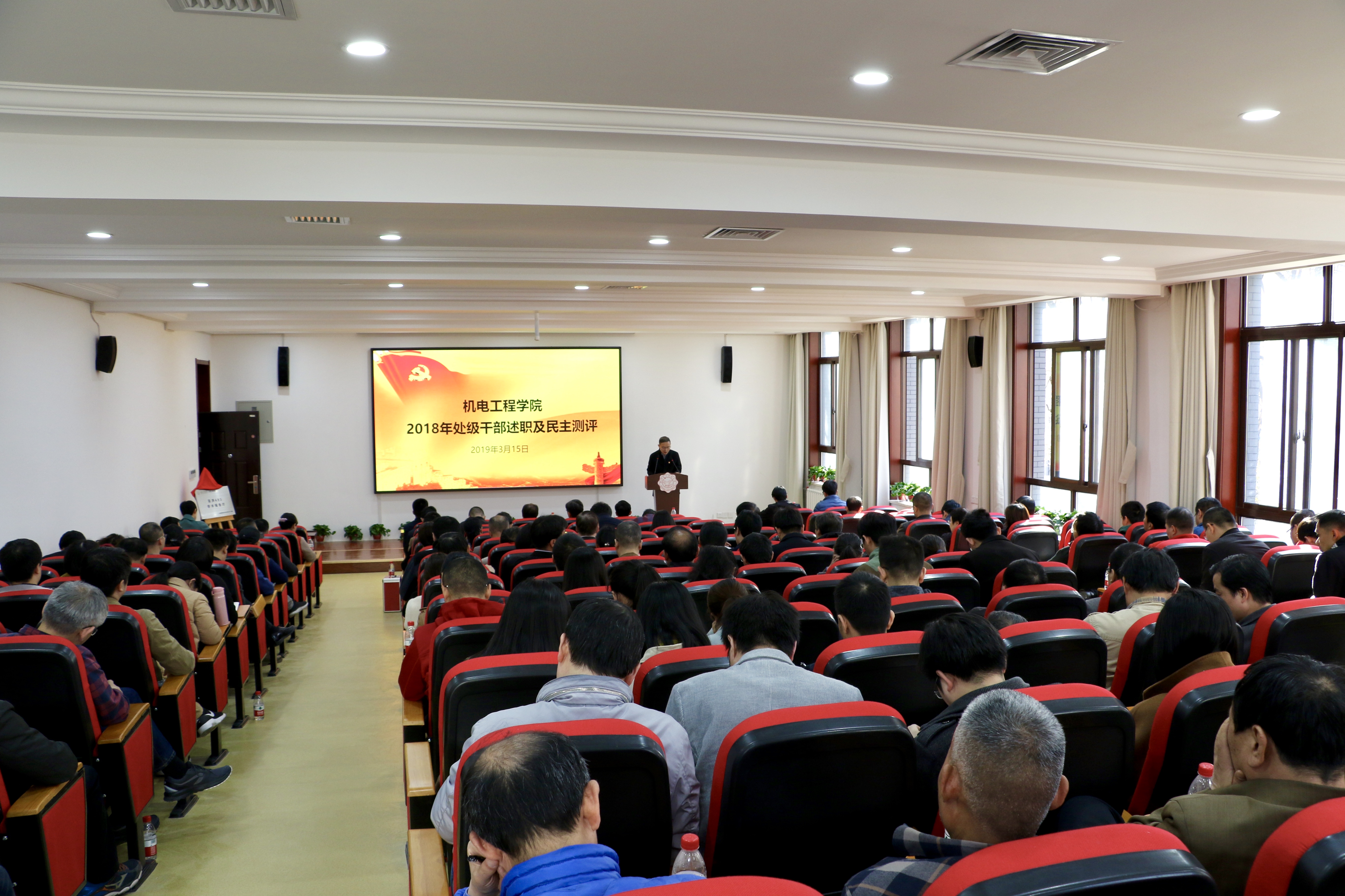 在北校区主楼三区237学术报告厅召开处级干部述职暨2019年学院工作会。学院全体领导班子成员、教职员工190余人参加会议,会议由副院长陈武主持。