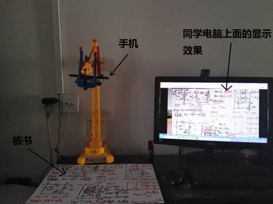 (通讯员 王飞)线下教学中,教室上课通常是在PPT和黑板板书之间来回切换,在线上实现这一功能显然会提高线上教学效果。虽然超星直播、腾讯直播或者腾讯会议都支持在摄像头和分享屏幕之间来回切换,但是通常外接摄像头像素很低,将摄像头对准黑板不太能满足清晰地黑板内容。