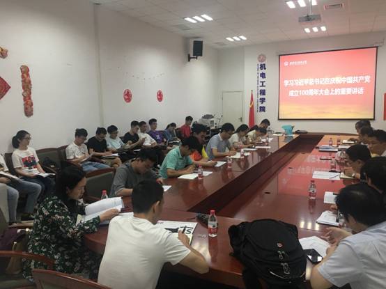 随后,与会的师生党支部书记纷纷发言分享学习感受。机电所党支部书记段学超表示,习近平总书记的重要讲话振奋人心,党的百年成就彪炳史册,举世瞩目,我们要以史为鉴、开创未来,铭记奋斗历程担当历史使命,从党的奋斗历史中汲取力量,扎实推进科技创新、人才培养本职工作。工设电封系学生党支部书记、辅导员陈朝晖分享了组织学生党员观看的体会,他说:“虽然学生党员第二天有考试,但大家还是一早就在会场坐好等候观看。总书记的讲话让人激动万分,一些学生党员听完后热泪盈眶,纷纷感叹党的先辈们创业之艰难,也为如今党带领人民走向伟大复兴取得的荣誉感到自豪!”机电所第一党支部书记高翔表示:“观看完庆祝大会,同学们感悟颇深。中国工程院院士、学校党委委员段宝岩结合自身留学、工作经历,分享了他对党领导全国人民富国、强军、利民的切身感悟。我们青年党员要将青春奋斗融入党的伟大事业,响应习近平总书记的号召,做不负时代、不负韶华、不负党和人民热切希望的西电青年。”