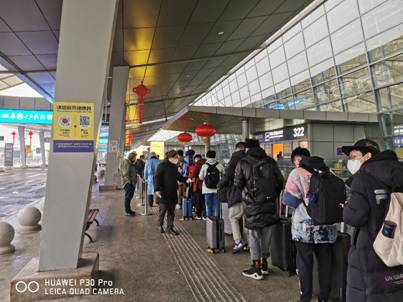 面对如此多并且不尽相同的目的地,学校有序组织、积极协调。将市内、省内市外、省外的不同目的地的同学,分别安排转运大巴、积极联系各地级市派车接以及“两站一场”的送机等等。对于不能返家的同学也做出有力的生活保障。
