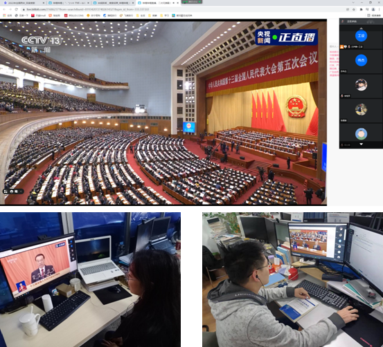 各党支部、各系所、学生班级组织观看了实况转播,并围绕政府工作报告等开展专题讨论。