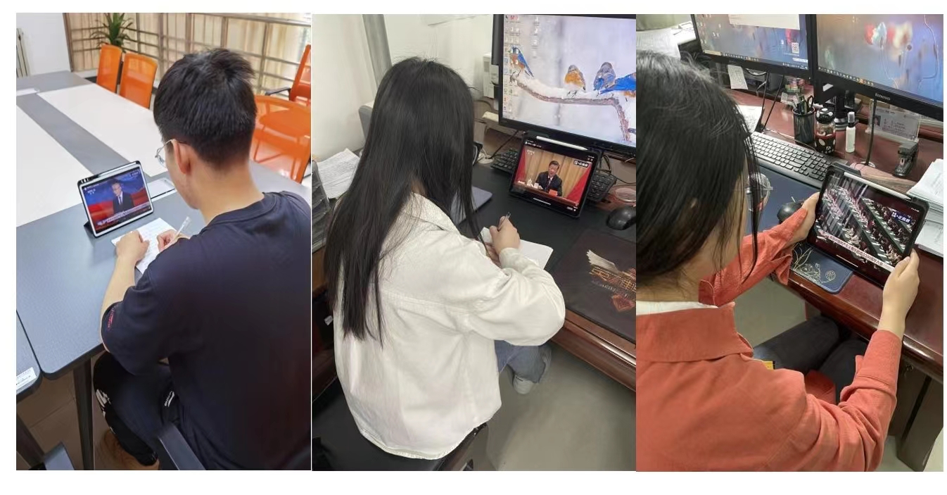 南校区信远楼一区110教室集体观看了大会。党支部各位同志在观看过程中认真记录习近平总书记讲话要点,认真学习党和国家对青年的期冀和要求,并深受鼓舞、倍感振奋。