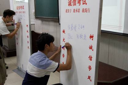 随后,陈武结合即将到来的期末考试进行了动员,特别强调了考风考纪,现场参加活动的学生代表在诚信考试签字板上庄重签名。学院学生纷纷表示要持续擦亮“学在西电”品牌,弘扬科学精神,坚守学术道德,踏踏实实做人,实事求是做学问,守护和传承好优良学风。