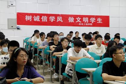 在南校区B208教室举行“树诚信学风 做文明学生”主题教育活动。学院执行院长黄进为全院本科生作“坚守学术诚信 传承优良学风”主题报告。活动由学院党委副书记陈武主持,学院本科生辅导员、学生代表线下参加活动。500余名师生通过线上方式参与活动。