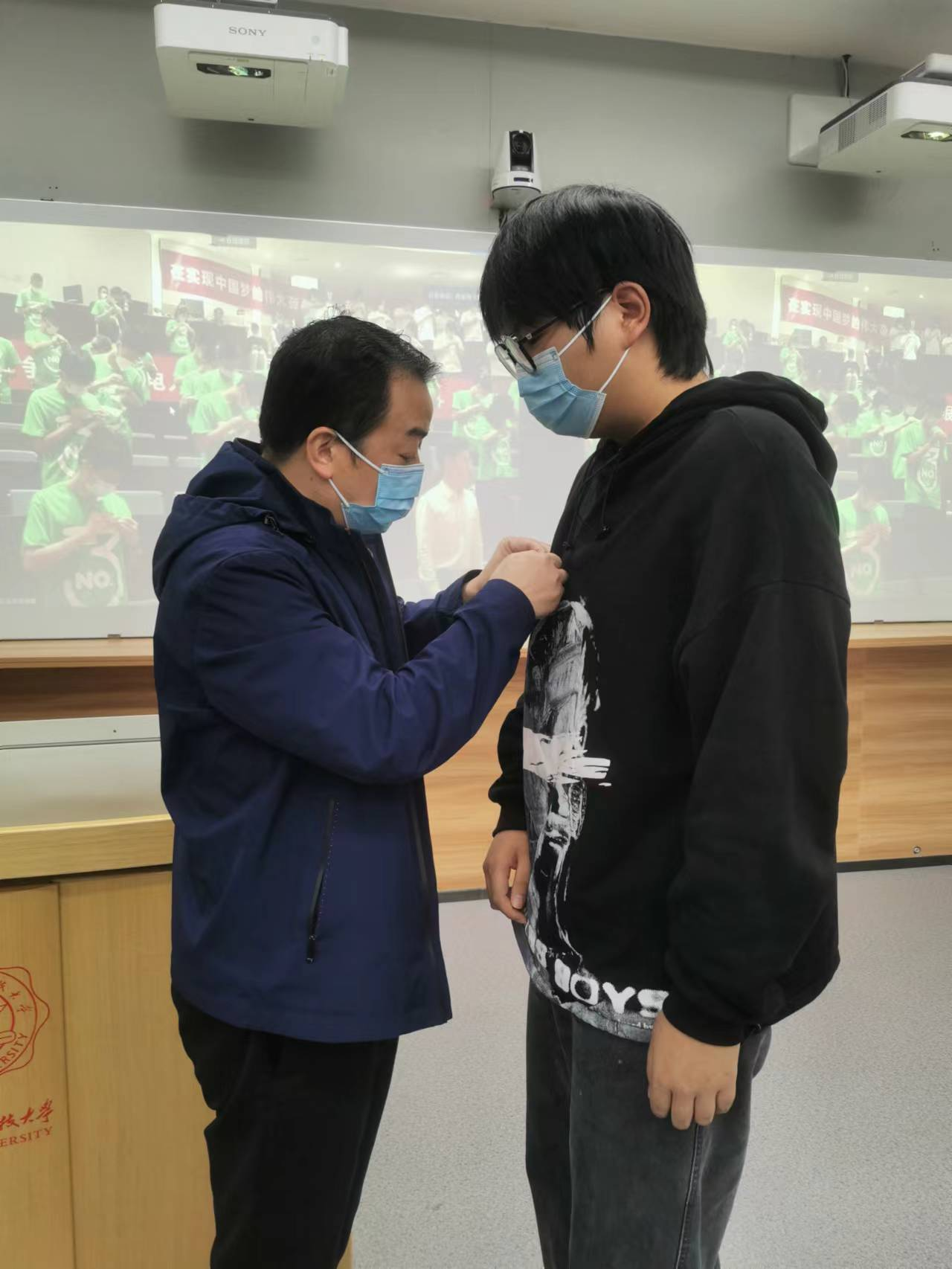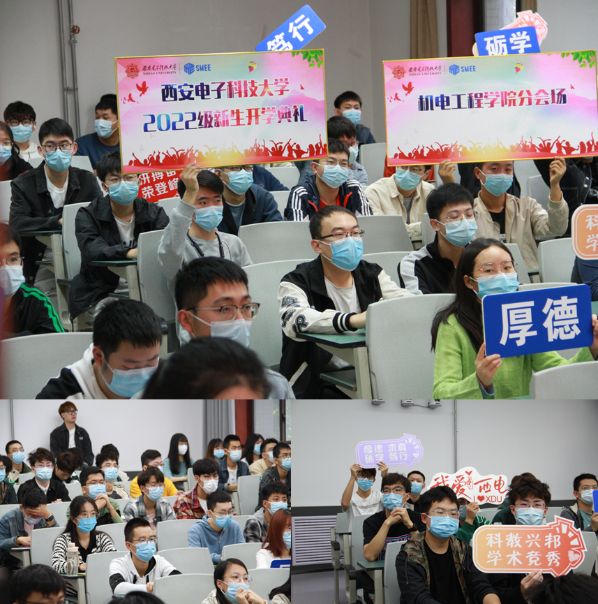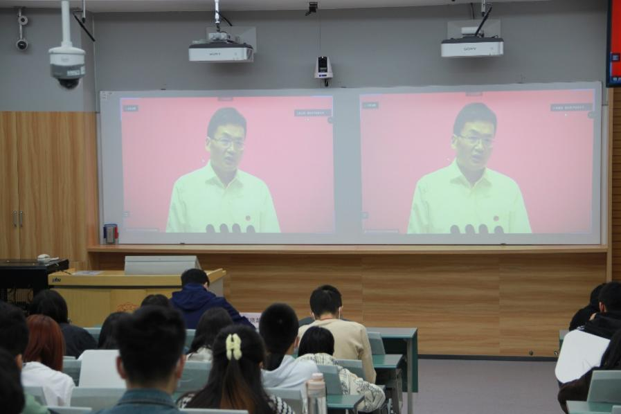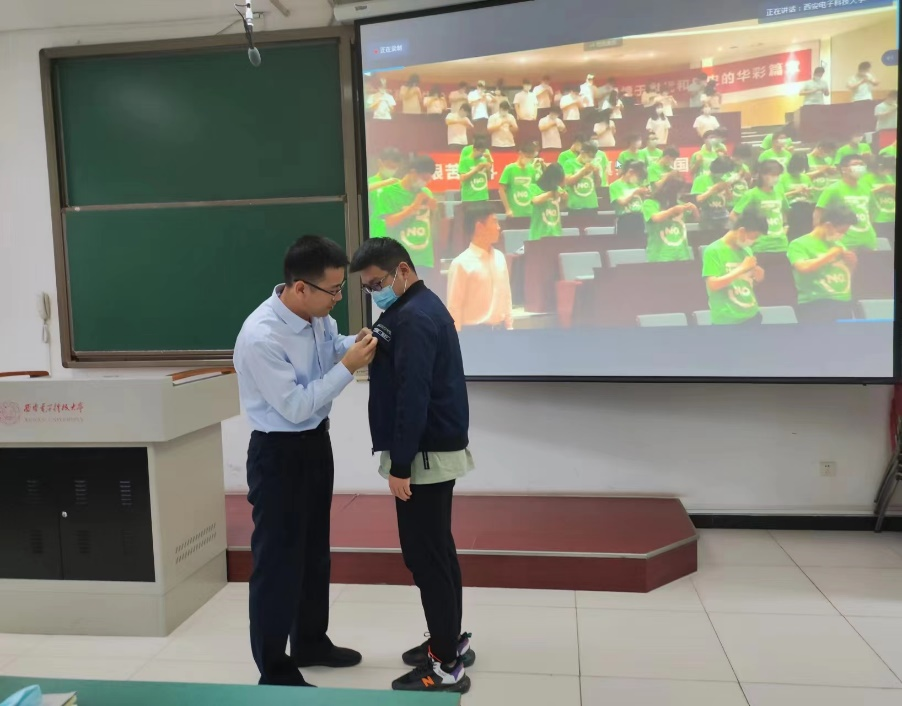 党委书记梁玮,执行院长黄进,副院长陈晓龙、卢琳、段学超等出席分会场。学院领导和全体研究生新生一起,全程观看了开学典礼的直播,并为2022级新生代表佩戴了校徽。