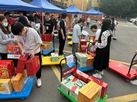 志愿者服务队积极响应、踊跃参与,在西电社区协助学校为离退休教职工发放福利。