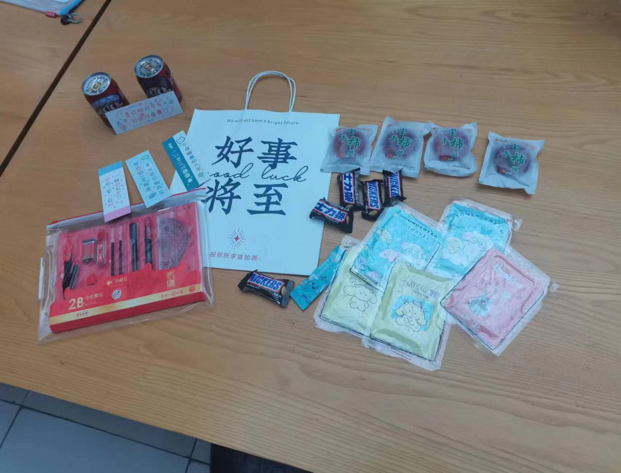 本次学院准备的“考研暖心大礼包”包含旺仔牛奶、士力架、柿饼、口罩、文具套装、暖宝宝、明信片等,每一份礼物都寄托着学院对考研学子们的亲切关怀和殷切祝福。柿子代表“柿柿”如意,心想“柿”成;旺仔牛奶寓意着学院希望同学们保持身体强健,精神充沛;暖宝宝是为了给早起参加考试的学子温暖双手,驱除严寒。辅导员老师们一边为同学们送上满怀祝福的大礼包,一边嘱咐同学们在考前关键时期要调整好心态,保证身体健康,以饱满的精神状态迎接考试。