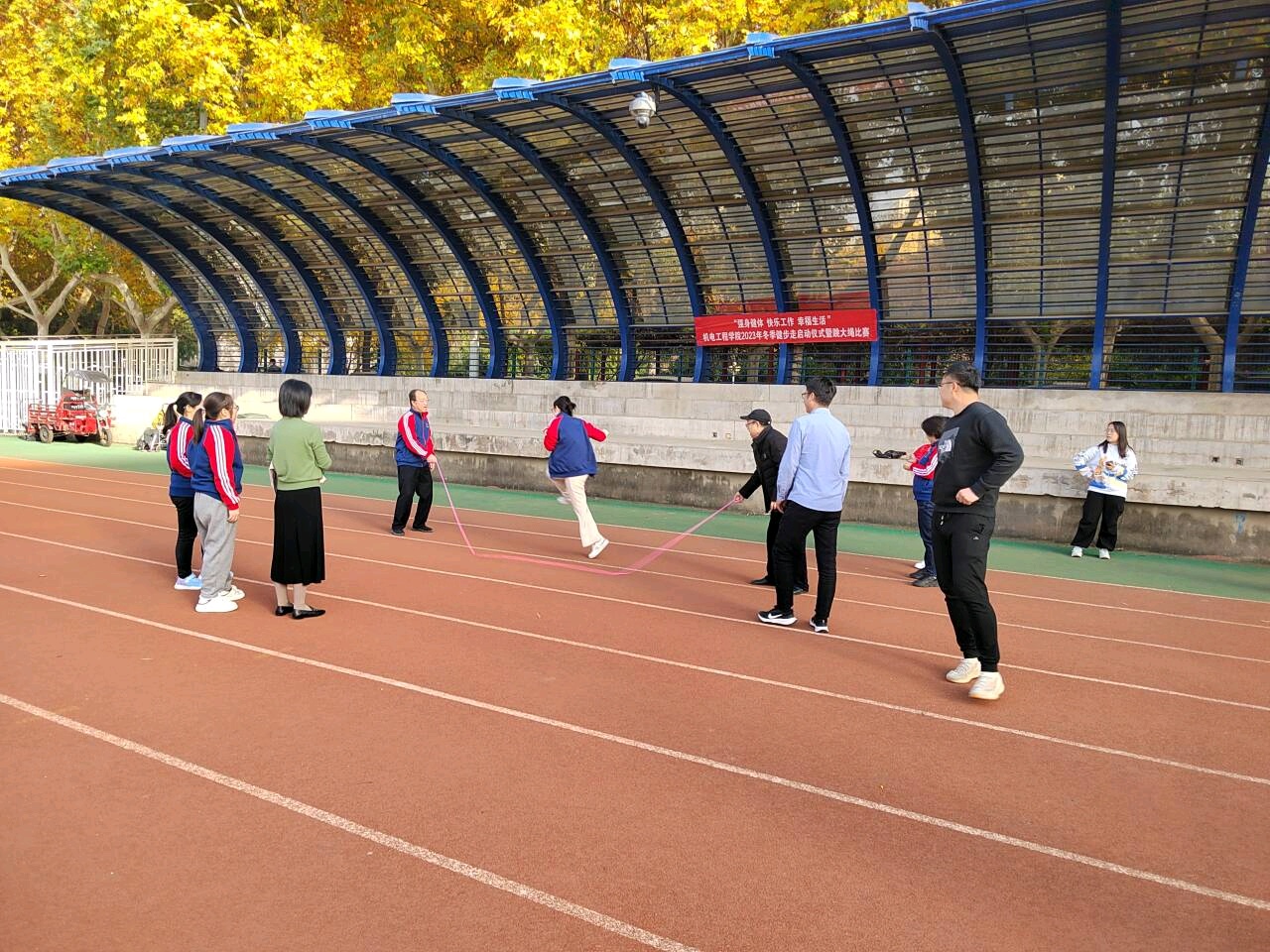 在北校区大操场组织开展了以“强身健体 快乐工作 幸福生活”为主题的2023年冬季健步走启动仪式暨跳大绳比赛,学院教师以系所为单位,积极踊跃参加,活动取得了圆满成功。