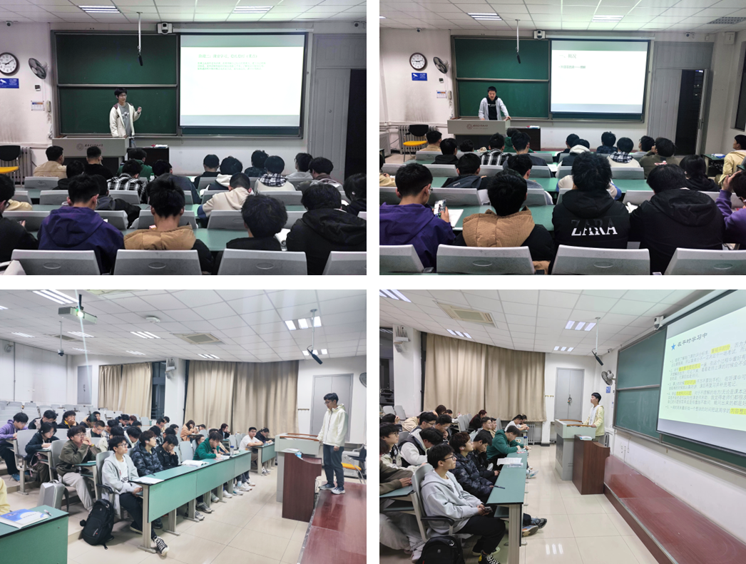 3月28日晚上,辅导员组织了来自230103班的5位同学来为大家讲解本学期学习的科目,共有40余名同学参加。首先李煜彬同学为大家带来高等数学A(II)课程的学习经验分享,他谈到需要从提前预习以便建立认知、通过课堂学习做到稳扎稳打、加强课后做题达到迁移应用以及拓展课外学习四个阶段来进行课程的通盘学习,为大家深入浅出的讲解了自己对于高数的学习心得。贺昱诚同学为大家带来大学英语(II)课程学习经验的分享,他提到可以加强对英语单词的积累,充实自己的词汇量,并通过练习往年四六级的听力原音强化自己的听感,此外还可以尝试在图书馆借阅英文学术报刊和书籍,进而将自己的外语能力进行拔高。关超同学则为大家讲授到自己的学习经验,他提到自己是在实验室的项目中,将学习的数学和物理类知识进行运用,在项目实践中不断加强自己的计算能力和逻辑推理能力,从而在课程的学习中更有针对性的强化练习。