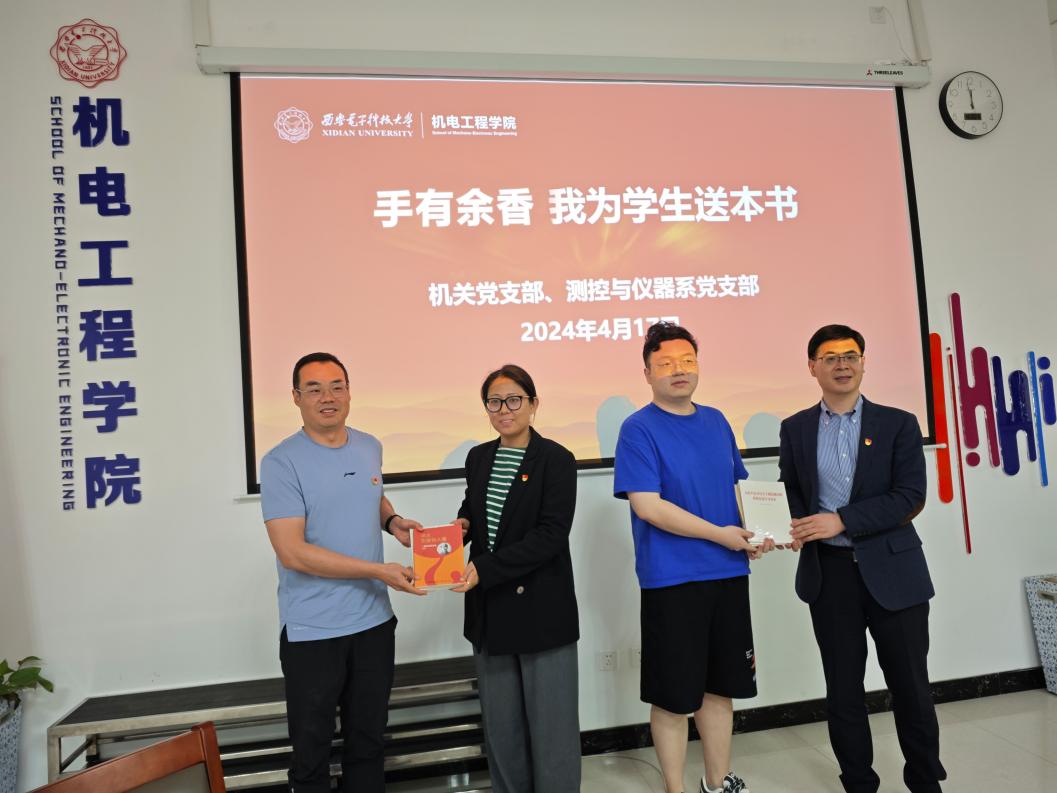 同时,本着“以书为媒,教学相长,共同成长”的理念,机关党支部和测控与仪器系党支部联合开展“手有余香我为学生送本书”品牌活动,测控与仪器系党支部书记王卫东教授和机关党支部副书记王飞向共建支部博士第三党支部及支部电子机械系本科第二党支部赠送《习近平总书记关于制造强国的重要论述学习读本》《为什么是中国》《理解中国》《中国共产党人的精神谱系》《伟大也要有人懂》等书籍30余本,书本将知识带给学生的同时也带着教师支部的关怀与期望,希望同学们通过品味红色书香,传承报国之志。