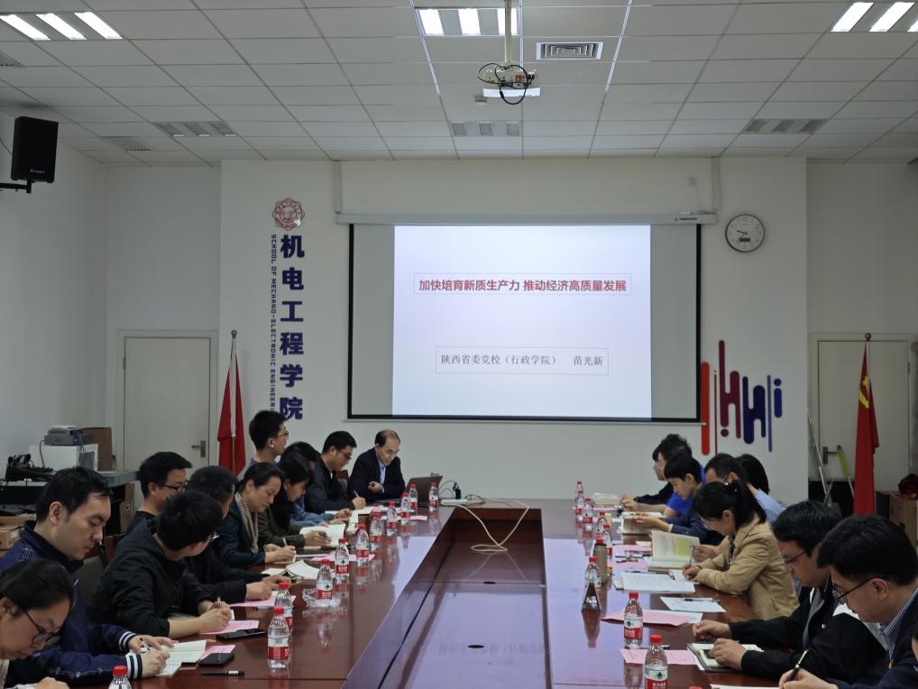 陕西省委党校党史教研部主任苗光新教授为与会师生作了题为《加快培育新质生产力推动经济高质量发展》的专题报告。报告用马克思政治经济学,从新质生产力提出背景及内涵,新质生产力与经济高质量发展的内在逻辑关联,加快培育新质生产力、推动经济高质量发展的着力点三个方面,对新质生产力进行了深入细致的解读和阐释系统的讲授。报告中运用中国城镇固定资产投资、消费者信心指数、出口变化情况、制造业指数等翔实数据,帮助与会人员进一步深刻体会培育新质生产力、建设制造强国的重要性。报告主题鲜明、视野开阔、内容丰富、分析透彻、深入浅出,是一堂既生动又深刻的党性教育课,为学院师生结合学习工作,推动新质生产力从理论到实践提供了有力指导和帮助。