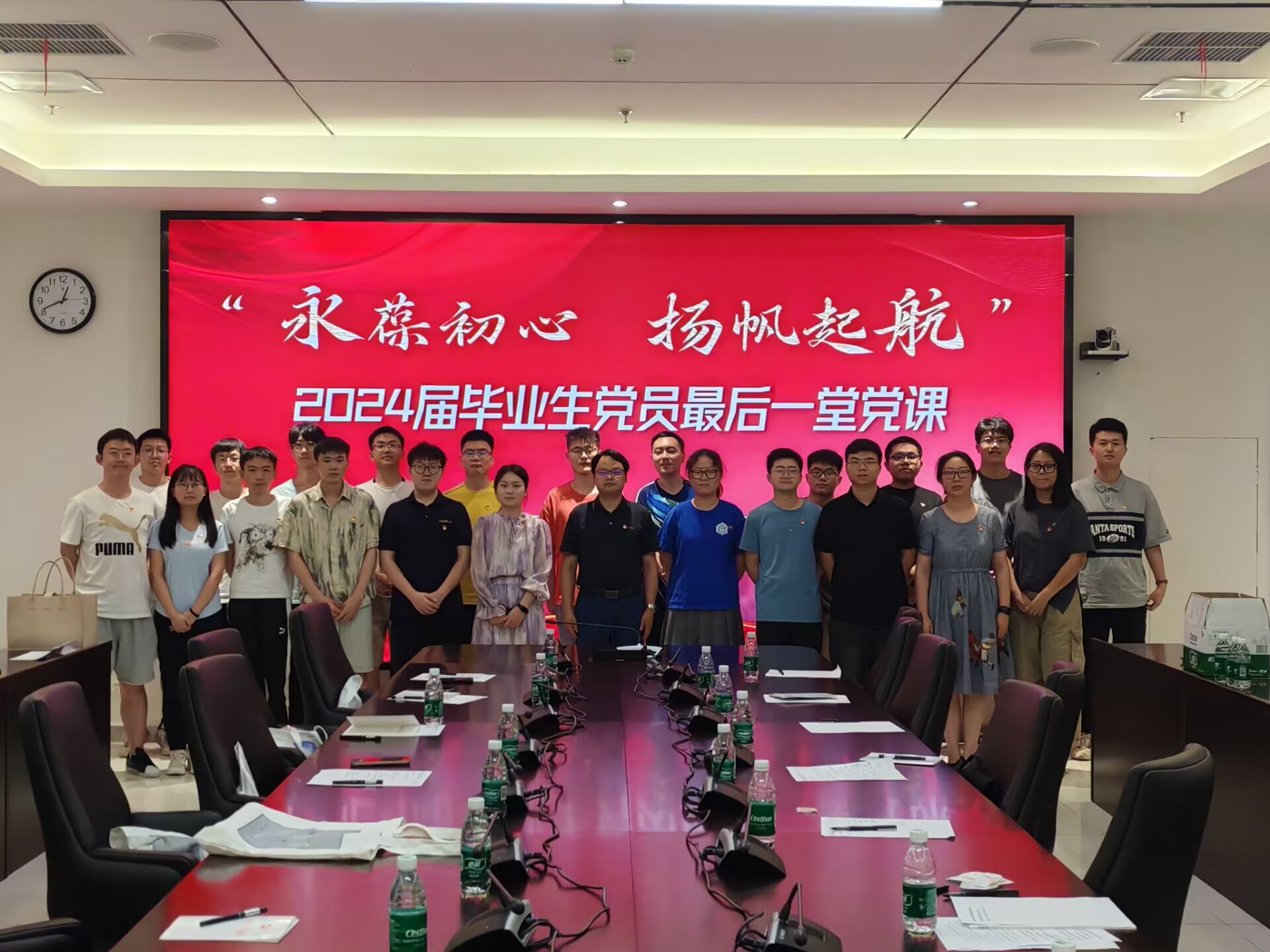 以“永葆初心 扬帆起航”为主题,通过志愿服务、党课交流座谈、过政治生日等形式开展毕业生最后一堂党课,学院党委副书记陈武、党支部书记以及学院毕业生党员代表参加。