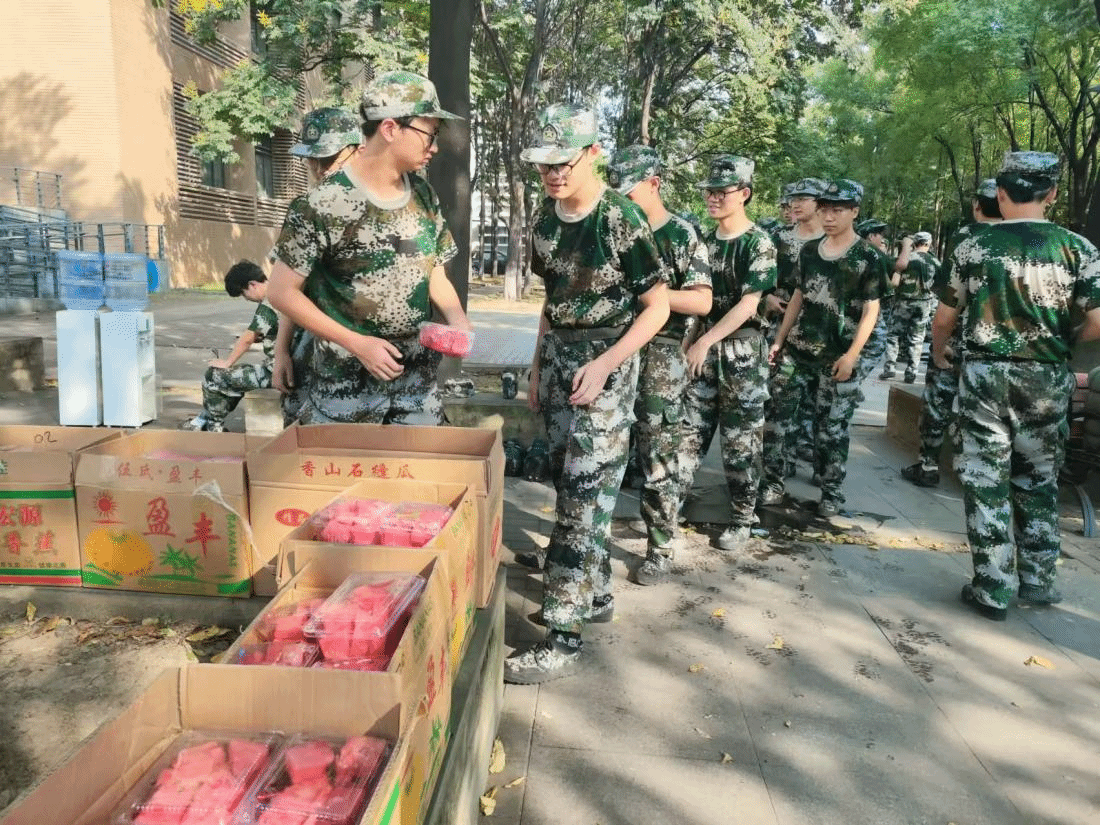 清凉慰问,温情满满。在军训艰苦的训练中,学院领导和老师们始终关心同学们的生活和训练情况,为同学们带来了夏日清凉补给—冰镇西瓜,一份清凉、一份关爱为同学们驱散十余日来酷暑下的疲惫,也是对大家的辛苦努力表示赞扬和肯定。同学们有序领取,感受学院的人文关怀和浓浓温情。清凉福利的发放不仅拉近了学院老师与学生之间的距离,也进一步增强了同学们对集体的归属感和认同感。