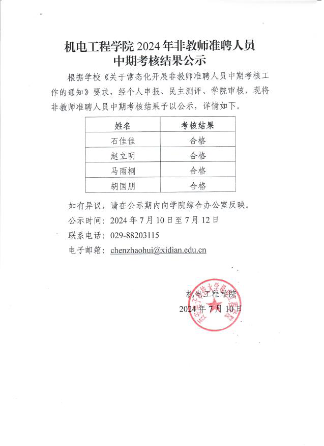 高h小说 2024年非教师准聘人员中期考核结果公示