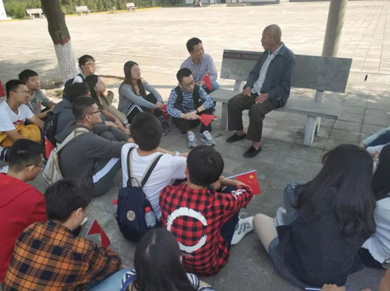 邀请到了两位革命老战士——参加抗美援朝战争的王志恒老人和参加解放战争的苏国正老人。两位老人在几位党员的搀扶下坐在石凳上,其他的党员们便席地而坐,仔细聆听老兵们历经的革命往事。