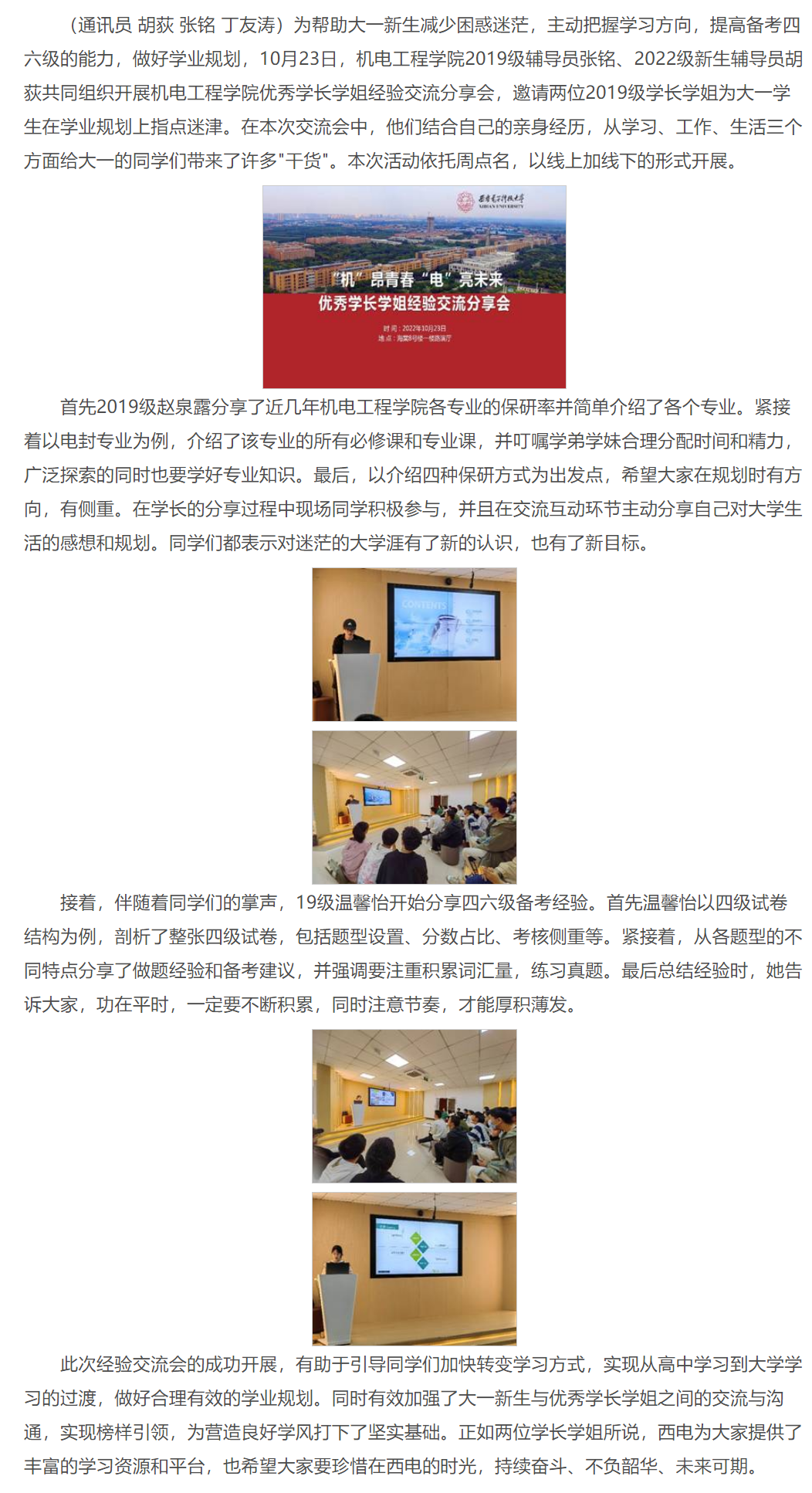 “机”昂青春,“电”亮未来|高h小说 优秀学长学姐经验交流分享会