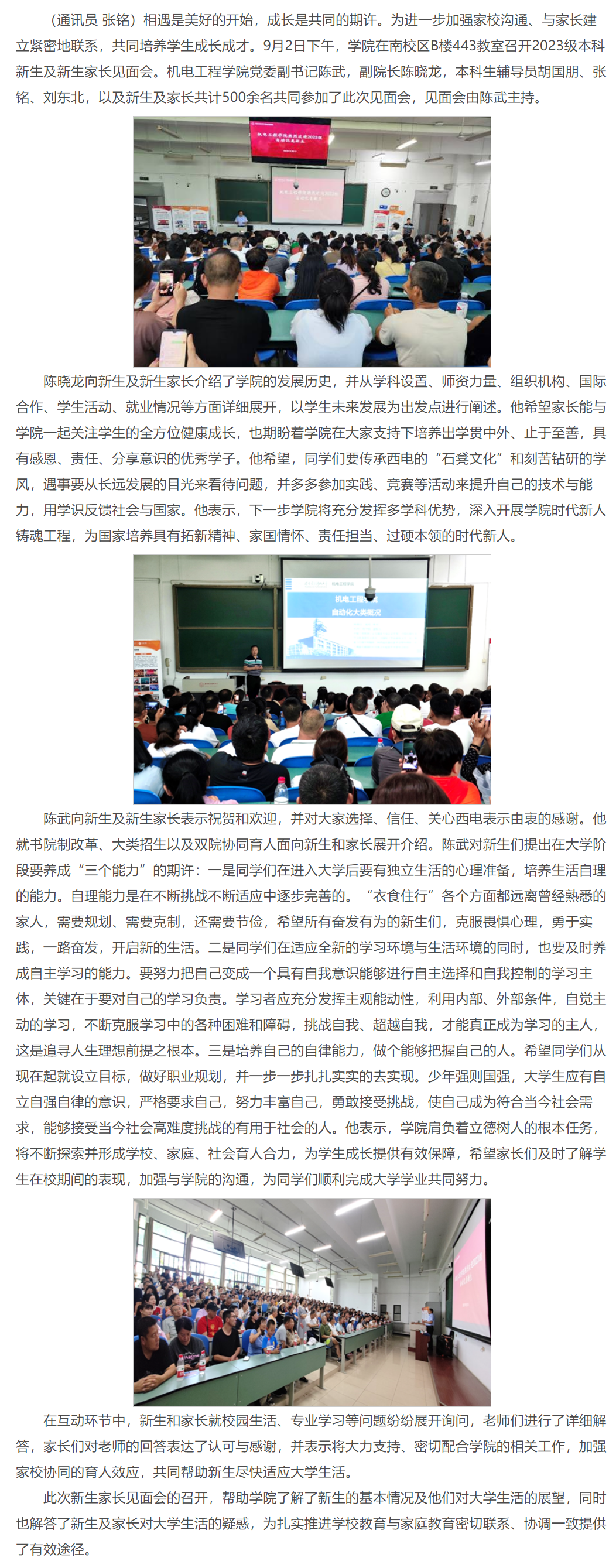 高h小说 顺利召开2023级本科新生及新生家长见面会