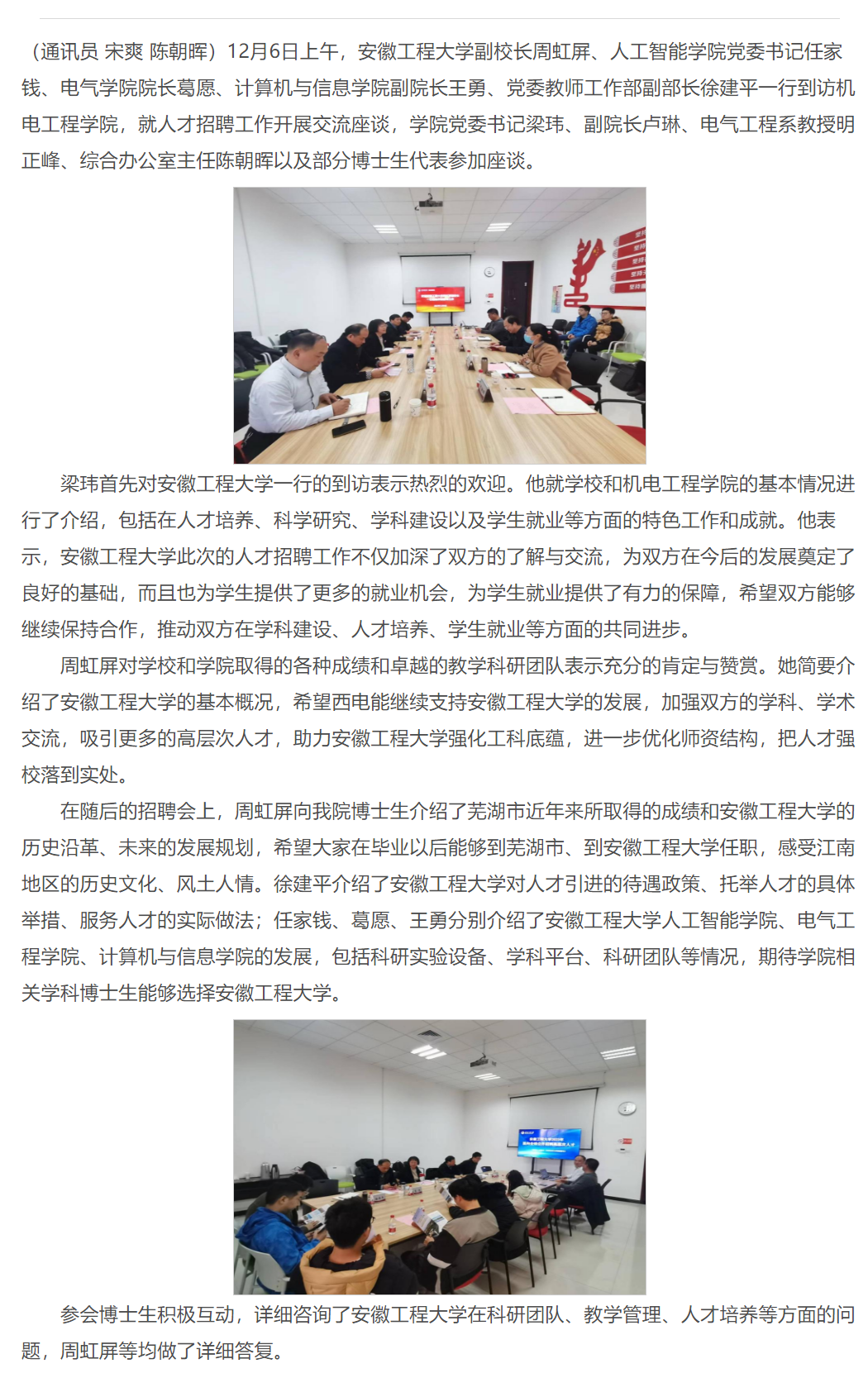 安徽工程大学一行到访高h小说 进行交流座谈和人才招聘宣讲