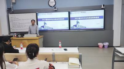 的考研成功率作出了详细的数据分析,她表示同学们需要根据自己的人生规划,在升学和就业间进行统筹考虑,作出最适合自己的抉择。詹老师精彩的讲解缓解了同学们当下紧张的求职情绪,增添了同学们就业的信心。