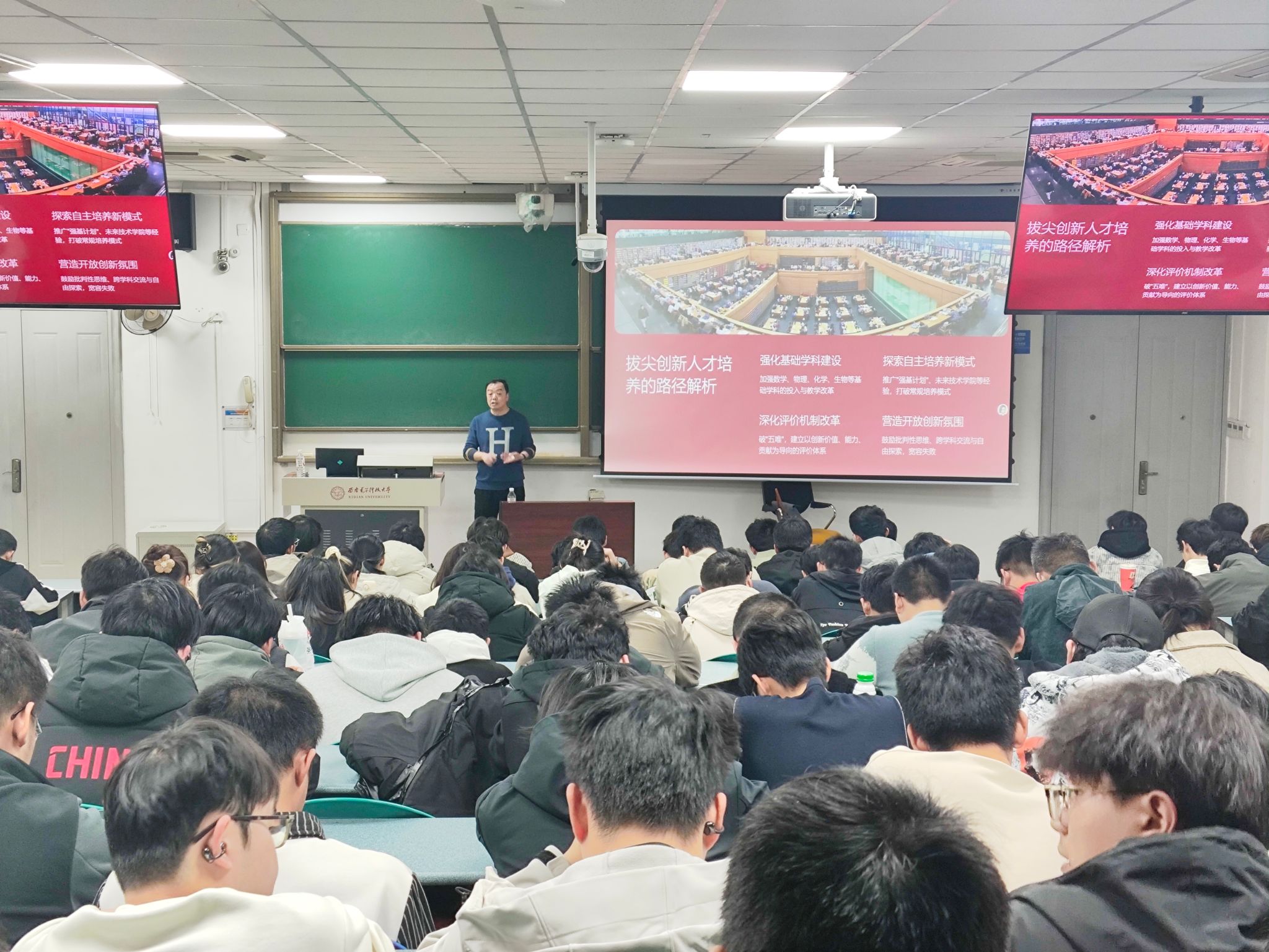 与此同时,学院副院长陈晓龙以《学习四中全会精神,将个人成长小目标融入国家规划大蓝图》为题,面向2023级本科生进行了宣讲;副院长段学超、王卫东分别以《深入学习四中全会精神 立志投身科技强国事业》《深入学习领会党的二十届四中全会精神》为题,面向2024级本科生进行了宣讲。